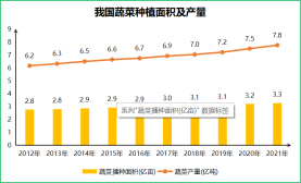 蔬菜是人類獲取營養(yǎng)的主要途徑之一,也是人類飲食中不可或缺的食物,其重要性僅次于糧食作物。近幾年蔬菜種植的經(jīng)濟效益較高,成為農(nóng)業(yè)增收、農(nóng)戶受益、農(nóng)村經(jīng)濟發(fā)展的重要經(jīng)濟產(chǎn)業(yè)。據(jù)統(tǒng)計,截止2021年蔬菜種植面積達3.3億畝,產(chǎn)量達7.8億噸,種植面積和產(chǎn)量仍有增長趨勢。