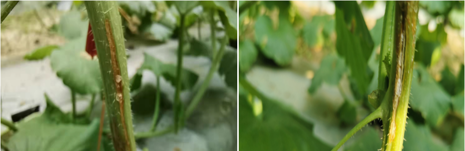 競雙750倍+35%春雷喹啉銅防治哈密瓜蔓枯病,病部干疤不留膠,病斑沒有蔓延和擴散。