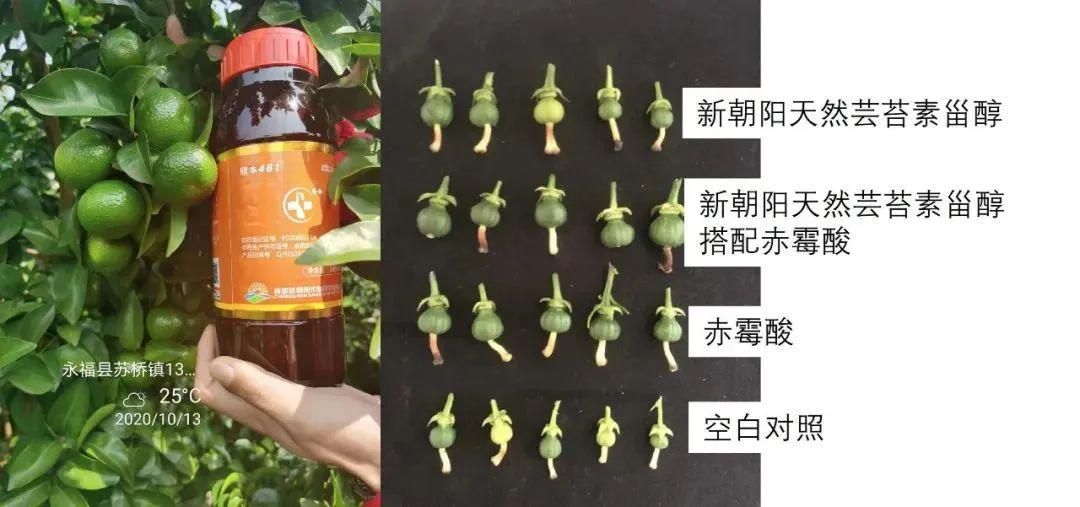 除了溫度、光照會影響果實糖分積累以外,營養(yǎng)的補(bǔ)充和調(diào)節(jié)劑的使用也決定著果實糖度和著色程度。尤其針對四川晚熟雜柑到后期氣溫慢慢的降低,普通蕓苔素吸收率利用率會大打折扣,而天然蕓苔素能提高作物的光合作用效率,在低溫下吸收利用率高,能夠低溫條件下促進(jìn)養(yǎng)分、色素和糖分的合成與積累。